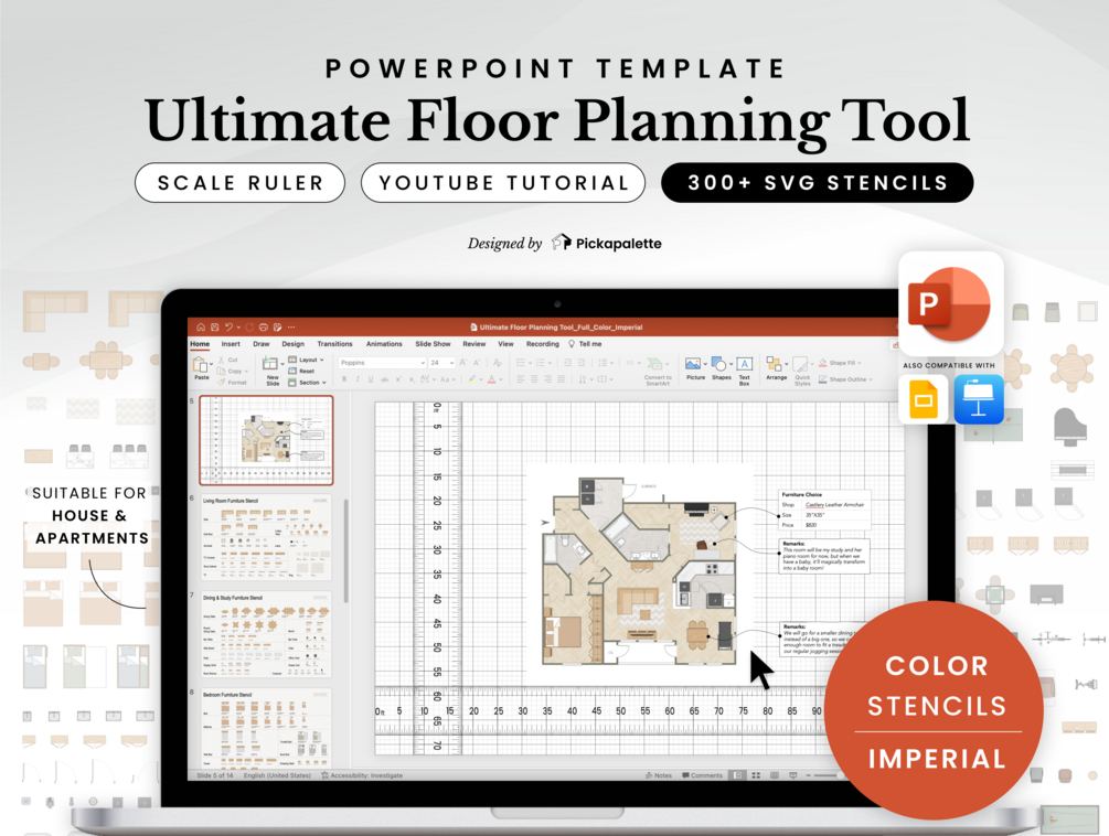 Ultimate Floor Planning Tool in PowerPoint | Color | Imperial