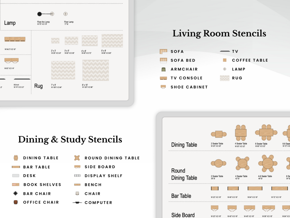 • This tool is used to furnish floor plan with the stencils provided. Thus, you will need to import your floor plan to start using the tool.